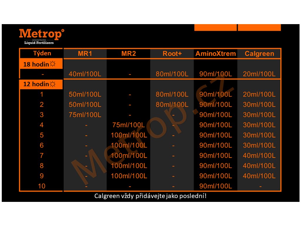 Skladování: Hnojiva METROP skladujte při pokojové teplotě na tmavém, suchém místě. Vyhněte se i studené podlaze.